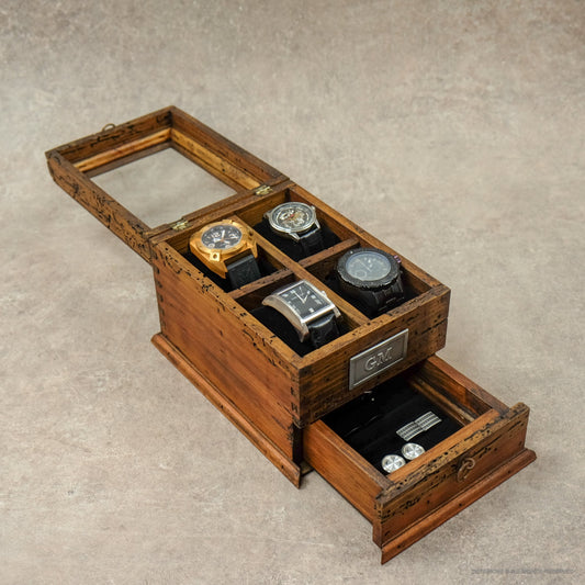 Watch Box with Valet Organizer for 4 Watches and Drawer